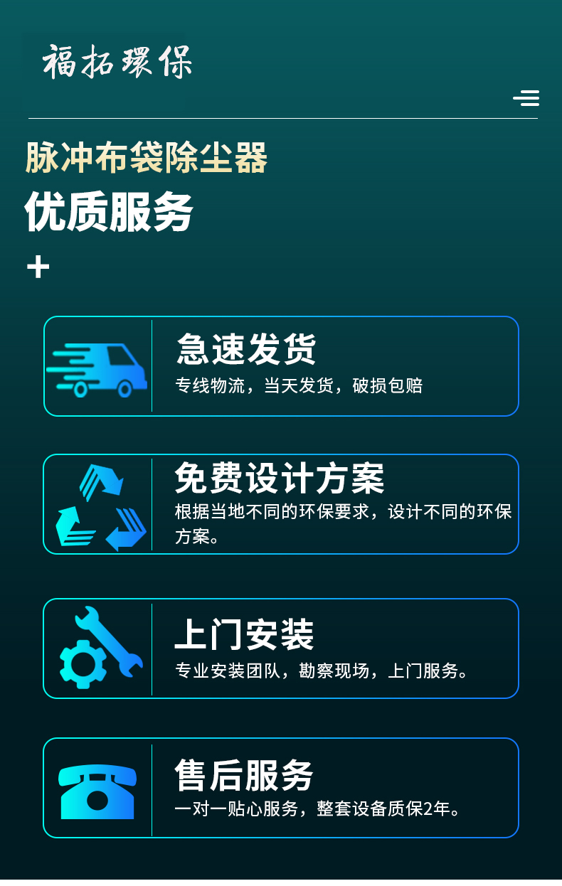 脉冲布袋除尘器是在布袋除尘器的基础上,改进的新型高效脉冲袋式除尘器。为了进一步完善脉冲袋式除尘器,改后的脉冲袋式除尘器保留了净化效率高、处理气体能力大、性能稳定、操作方便、滤袋寿命长、维修工作量小等优点。