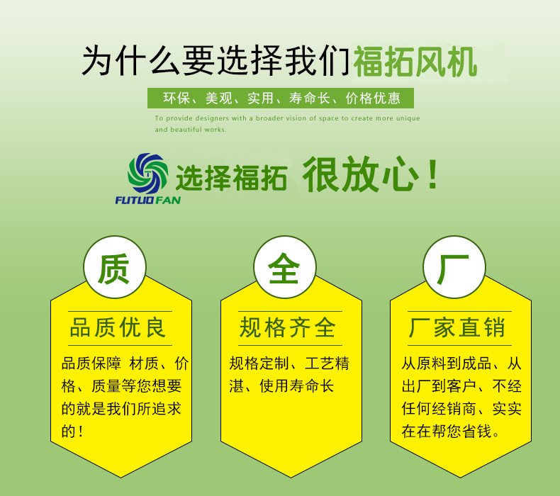 宏盛达风机采用FRP防紫外线船用级涂层,玻璃纤维原切毡布,有效的面对日晒雨淋而产生的老化及腐蚀现象。