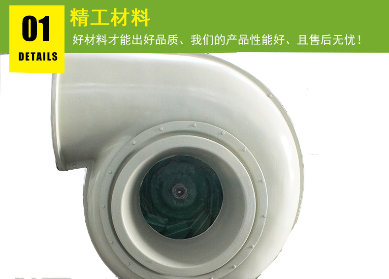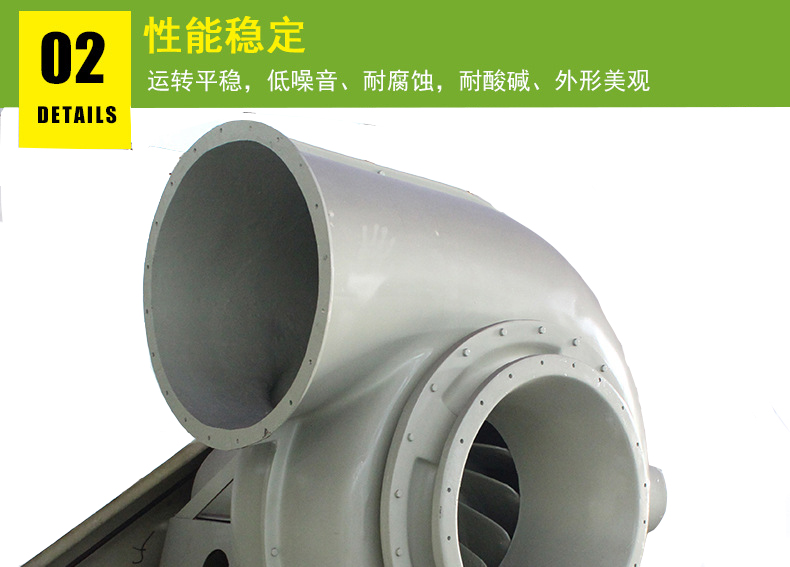 ► 风机叶轮外壳采用乙烯基酯树脂成形,对大气、水和一般浓度的酸、碱、盐以及多种油类和溶剂都有较好的抵抗能力。由于叶轮采用树脂成形,质轻,所以有效功率可达80%以上,达到节能减排的效果,降低企业生产成本和维护成本。