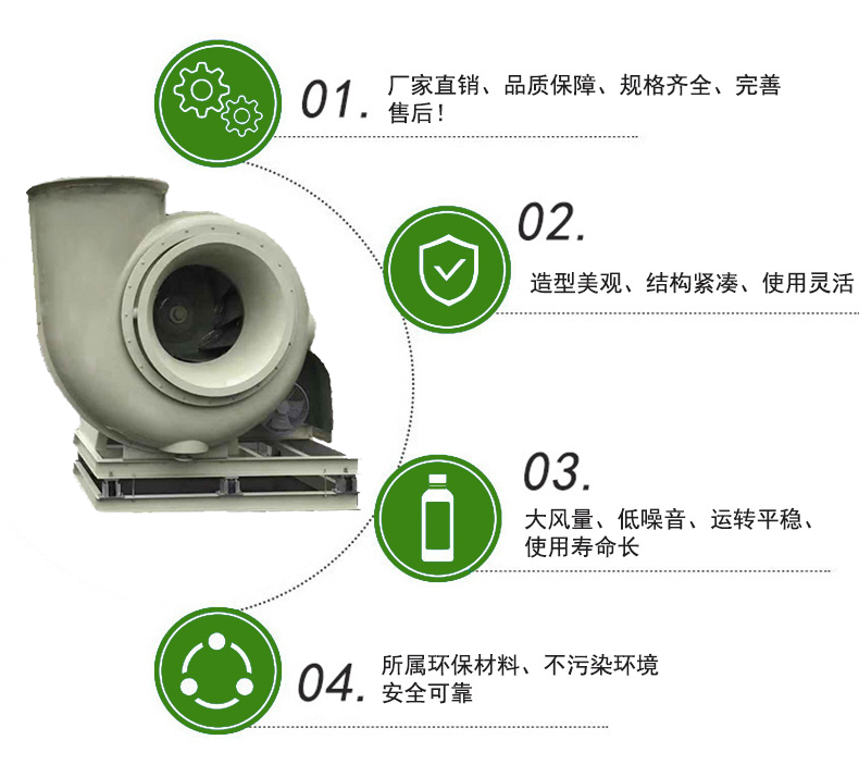 宏盛达风机采用日本昭和乙烯基玻璃钢树脂,引进先进生产技术结合自主研发,适合各类化工、电镀、污水处理等腐蚀环境使用。